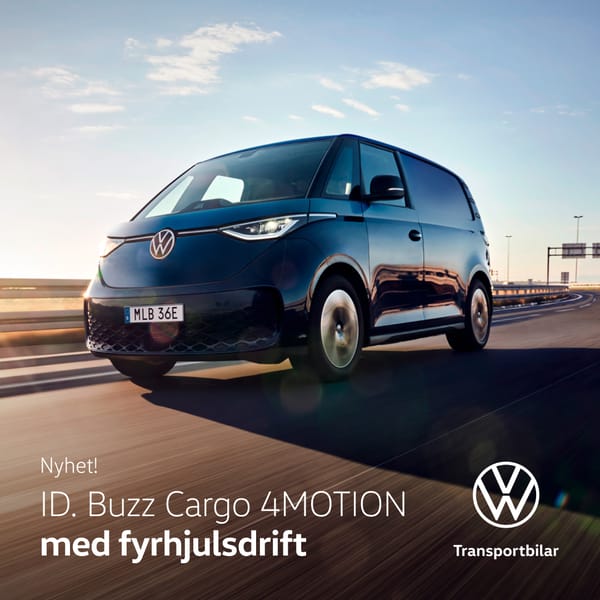Vad förväntar du dig av en modern transportbil? Kanske eldrift, rejäl lastvolym och tillräcklig räckvidd. Eller varför inte fyrhjulsdrift och acceleration som en sportbil? Precis allt det som den elektriska ID. Buzz Cargo kan erbjuda. Med nya, innovativa ID. Buzz Cargo kommer en helt ny generation av transportbilar ut på vägarna – med intelligenta uppkopplade funktioner och avancerade assistans- och säkerhetssystem. Med en ikonisk design som tydligt visualiserar eldrift och miljöengagemang levererar ID. Buzz Cargo en helhet som tar sig ann alla dina utmaningar i det vardagliga arbetet och bjuder på klassledande elbilsegenskaper. Är du redo att förändra din syn på mobilitet? Pris från 470 000 kr (exkl. moms)